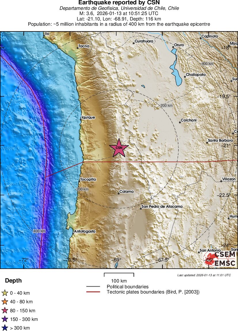 | 3.6 | 116.2 | 10958 | 11:51 | Link | Kleine beving - TARAPACA, CHILE - Vandaag |