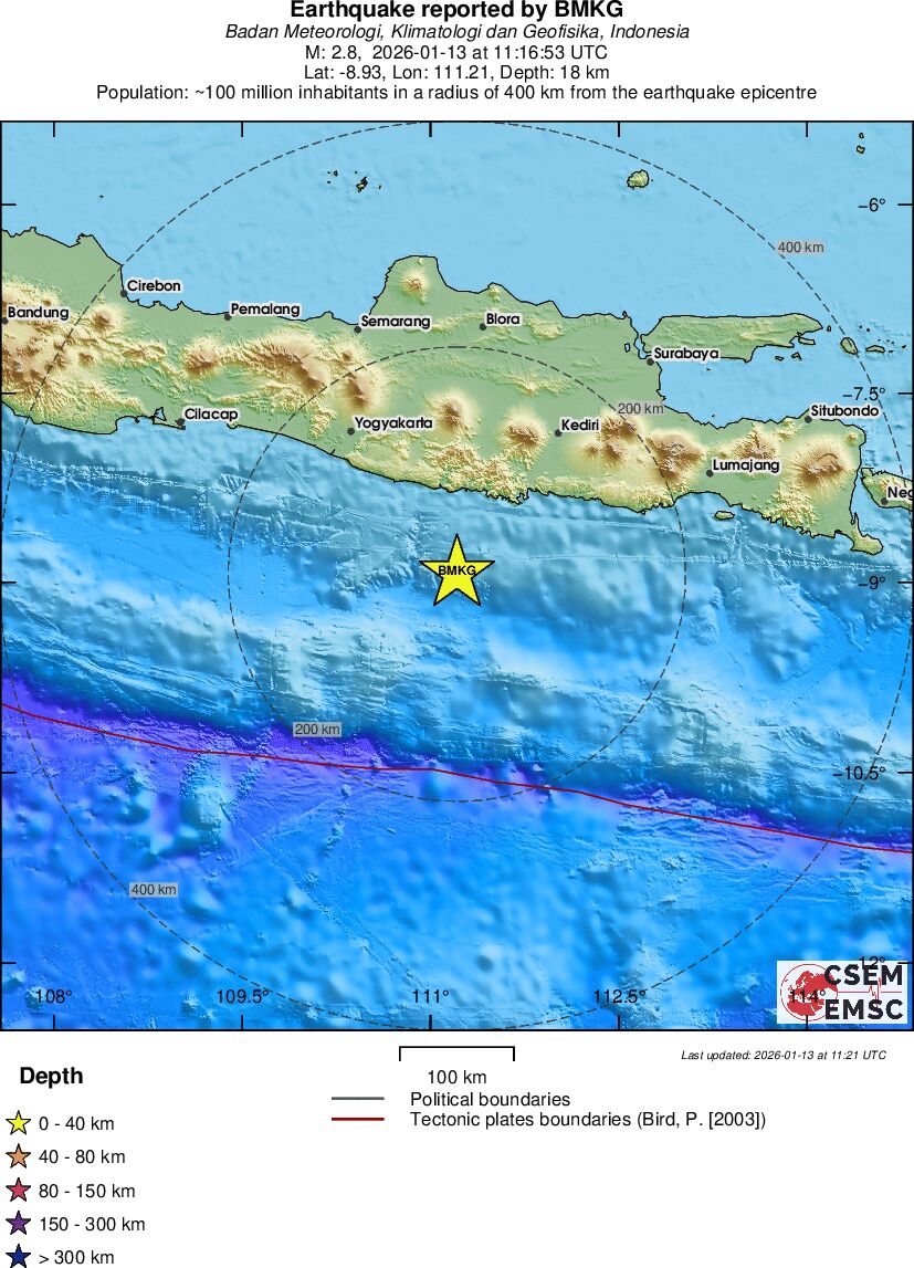 | 2.5 | 22 | 11997 | 11:46 | Link | Kleine beving - SOUTH OF JAVA, INDONESIA - Vandaag |