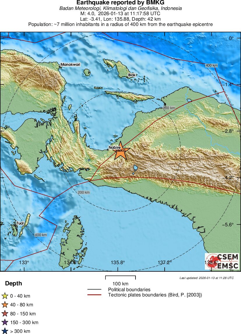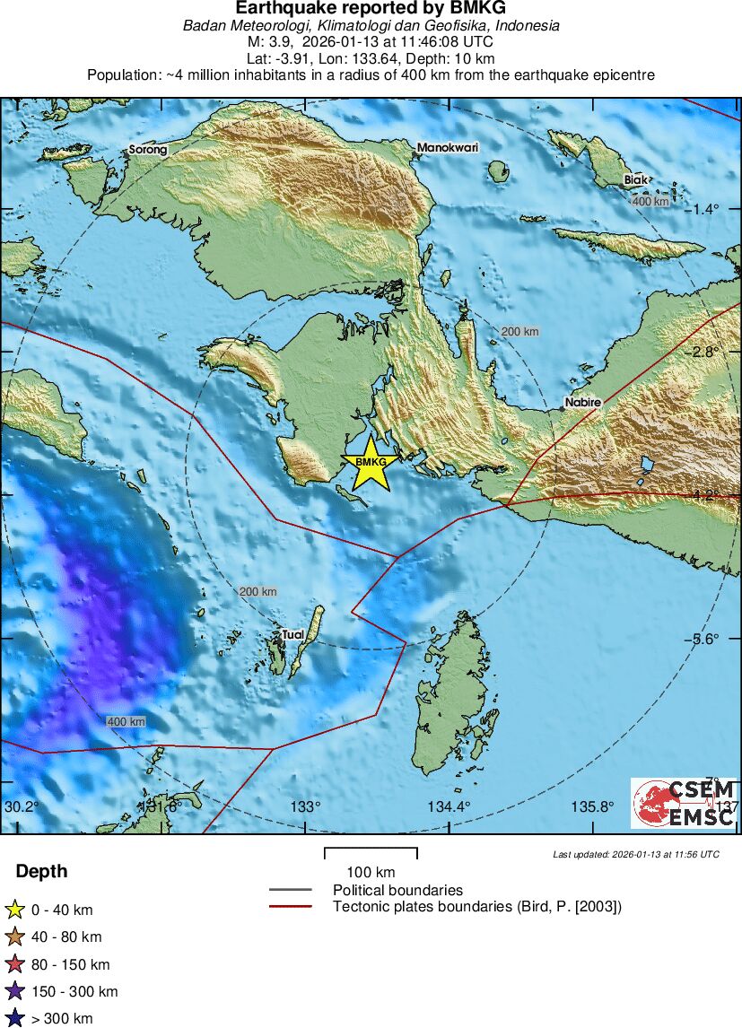 | 3.9 | 10 | 12730 | 12:46 | Link | Kleine beving - PAPUA, INDONESIA - Vandaag |