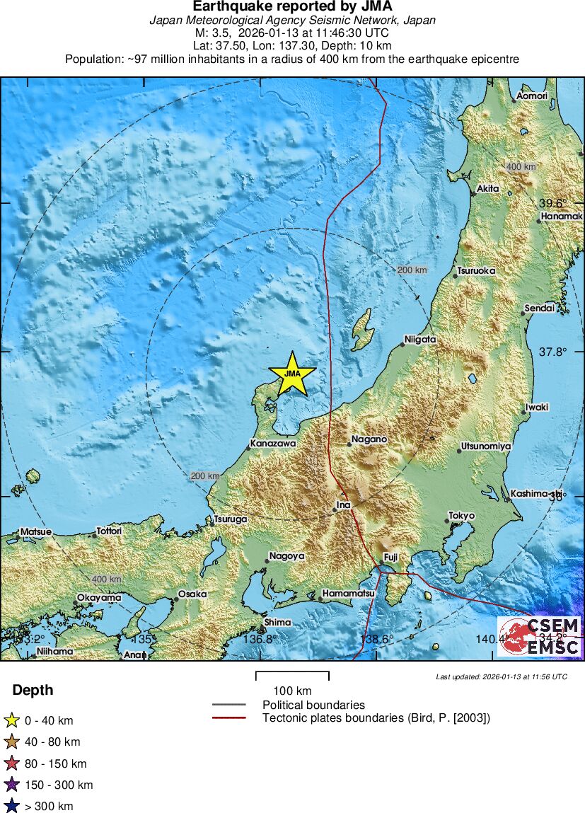 | 3.5 | 10 | 8868 | 12:46 | Link | Kleine beving - NEAR WEST COAST OF HONSHU, JAPAN - Vandaag |