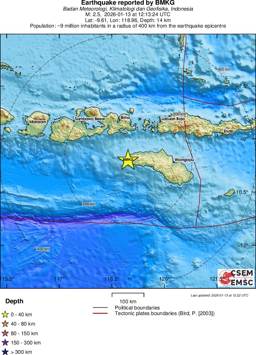 | 2.5 | 14 | 12342 | 13:13 | Link | Kleine beving - SUMBAWA REGION, INDONESIA - Vandaag |