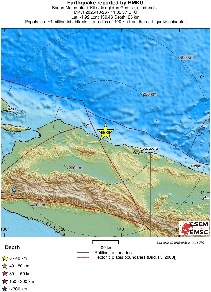 | 4.1 | 25 | 12866 | 12:02 | Link | Lichte beving - NEAR N COAST OF PAPUA, INDONESIA - Vandaag |
