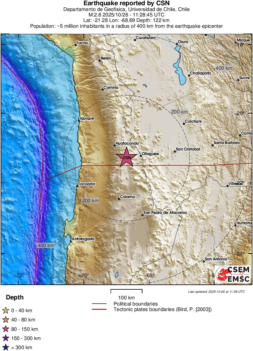 | 2.8 | 122.6 | 10961 | 12:28 | Link | Kleine beving - ANTOFAGASTA, CHILE - Vandaag |