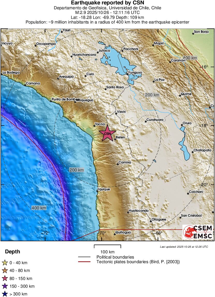| 2.9 | 109 | 10758 | 13:11 | Link | Kleine beving - TARAPACA, CHILE - Vandaag |