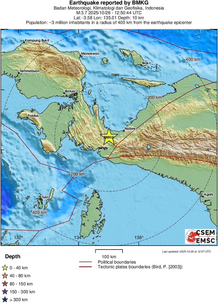 | 3.7 | 10 | 12778 | 13:50 | Link | Kleine beving - PAPUA, INDONESIA - Vandaag |