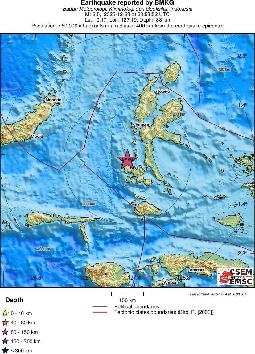 | 2.5 | 88 | 11996 | 00:53 | Link | Kleine beving - HALMAHERA, INDONESIA - Vandaag |