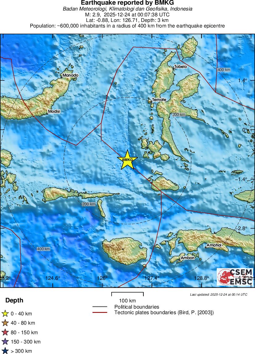 | 2.9 | 3 | 12033 | 01:07 | Link | Kleine beving - MOLUCCA SEA - Vandaag |