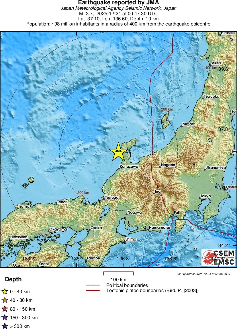 | 3.7 | 10 | 8878 | 01:47 | Link | Kleine beving - NEAR WEST COAST OF HONSHU, JAPAN - Vandaag |