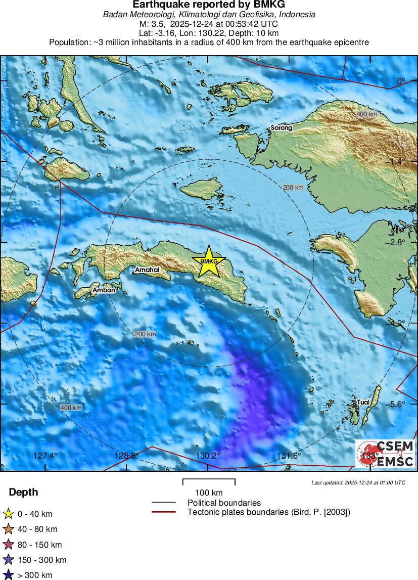 | 3.5 | 10 | 12457 | 01:53 | Link | Kleine beving - SERAM, INDONESIA - Vandaag |