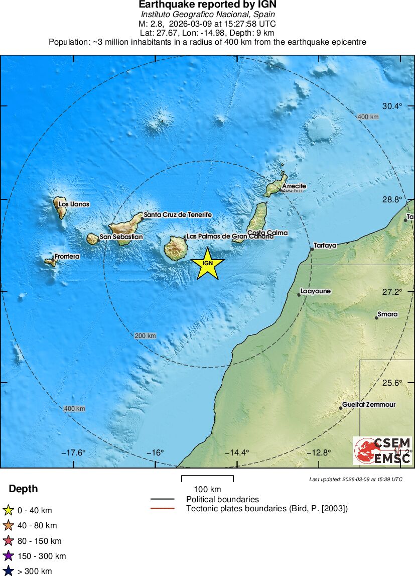 | 2.8 | 9.1 | 3350 | 16:27 | Link | Kleine beving - CANARY ISLANDS, SPAIN REGION - Vandaag |