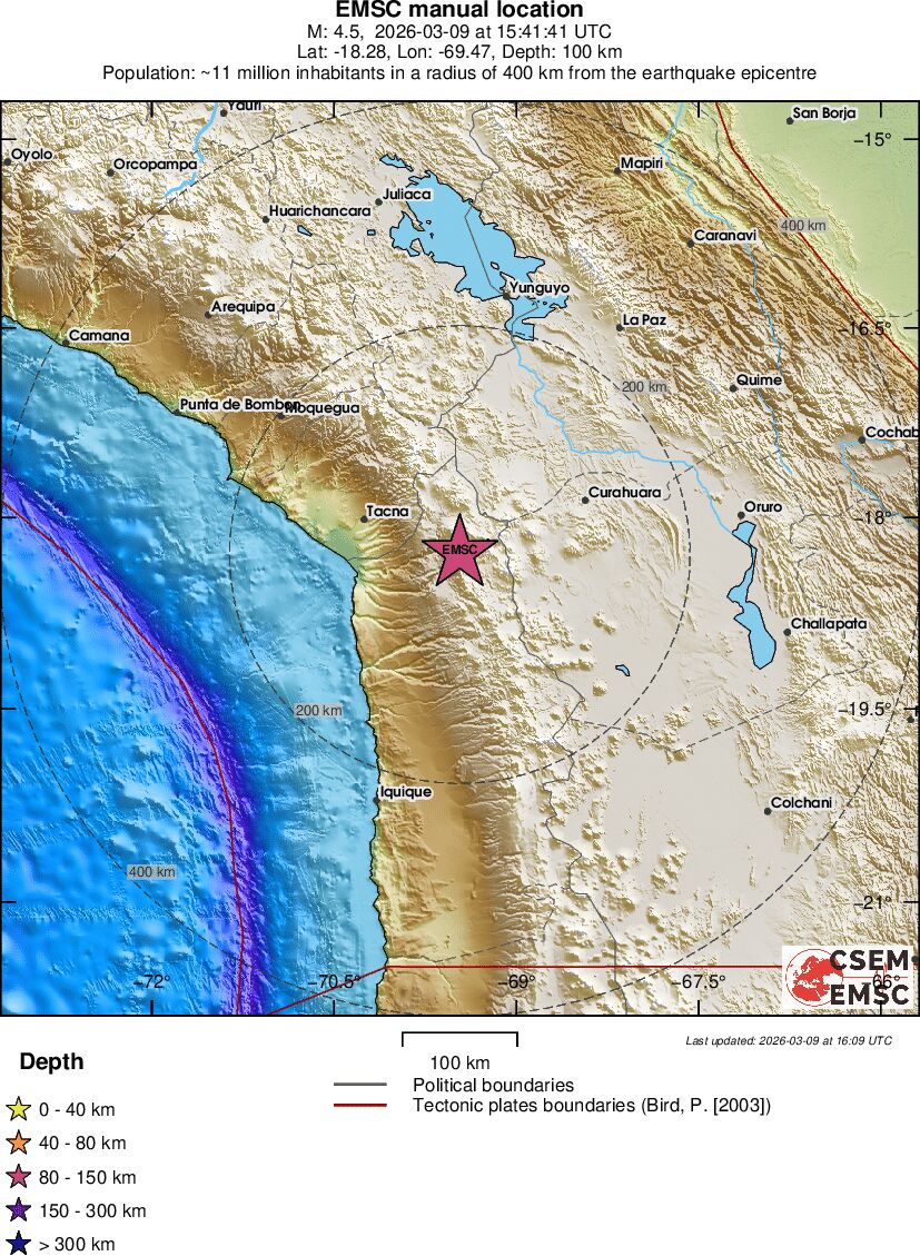 | 4.5 | 100 | 10738 | 16:41 | Link | Lichte beving - TARAPACA, CHILE - Vandaag |