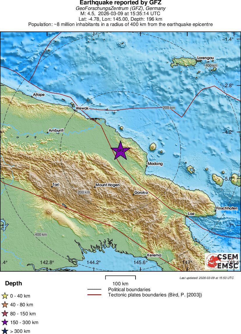 | 4.5 | 196.5 | 13438 | 16:35 | Link | Lichte beving - NEAR N COAST OF NEW GUINEA, PNG. - Vandaag |