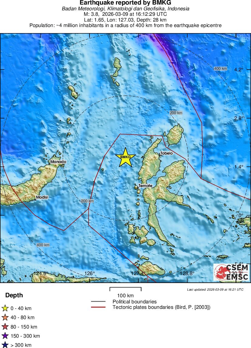| 3.8 | 28 | 11816 | 17:12 | Link | Kleine beving - HALMAHERA, INDONESIA - Vandaag |