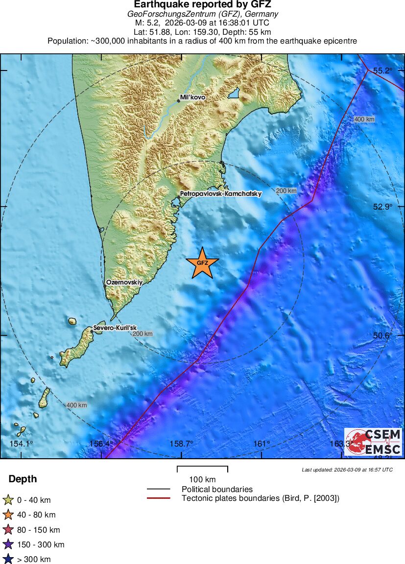 | 5 | 54.7 | 8053 | 17:38 | Link | Matige beving - OFF EAST COAST OF KAMCHATKA - Vandaag |