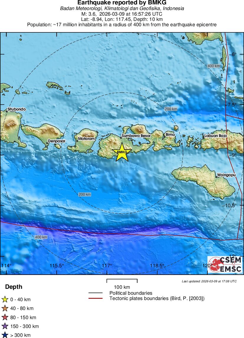 | 3.6 | 10 | 12184 | 17:57 | Link | Kleine beving - SUMBAWA REGION, INDONESIA - Vandaag |